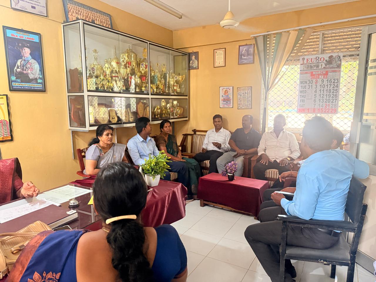 2025ஆம் ஆண்டுக்கான கல்விப் பொதுத்தராதர உயர்தரப் பரீட்சைப் பெறுபேறுகளின் அடிப்படையில், கணிதப் பிரிவில் தேசிய மட்டத்தில் முதலிடம் பெற்றுச் சாதனை படைத்த எமது வித்தியாலய மாணவன் தெ.திருக்குமரனுக்கு, வடக்கு மாகாணக் கல்விப் பணிப்பாளர் மற்றும் மாகாணக் கல்வி அதிகாரிகள் பாடசாலைக்கு இன்று வருகை தந்து தமது வாழ்த்துகளைத் தெரிவித்தனர்.