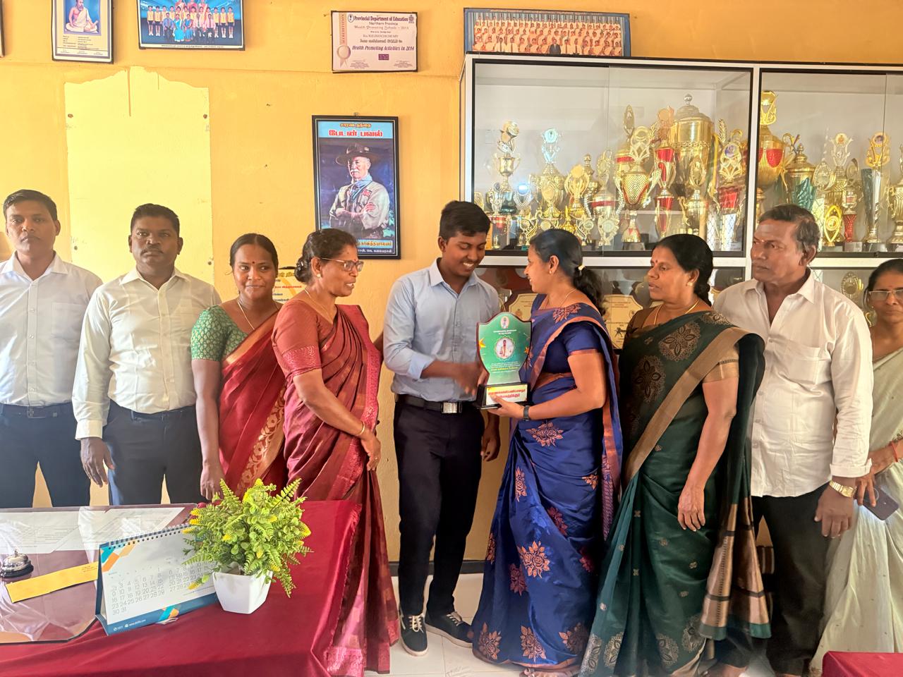 2025ஆம் ஆண்டுக்கான கல்விப் பொதுத்தராதர உயர்தரப் பரீட்சைப் பெறுபேறுகளின் அடிப்படையில், கணிதப் பிரிவில் தேசிய மட்டத்தில் முதலிடம் பெற்றுச் சாதனை படைத்த எமது வித்தியாலய மாணவன் தெ.திருக்குமரனுக்கு, வடக்கு மாகாணக் கல்விப் பணிப்பாளர் மற்றும் மாகாணக் கல்வி அதிகாரிகள் பாடசாலைக்கு இன்று வருகை தந்து தமது வாழ்த்துகளைத் தெரிவித்தனர்.